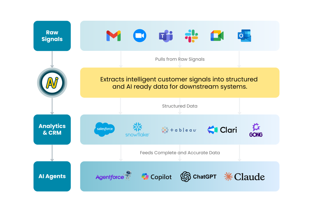 Emails, calls, and meetings, the richest AI signal, captured by no one, structured by no one.